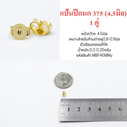 แป้นต่างหูปีกนก 4.5มิล 1คู่ ทองแท้9k 37.5%