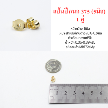 แป้นต่างหูปีกนก 5มิล 1คู่ ทองแท้9k 37.5%
