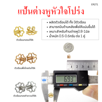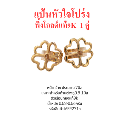 แป้นต่างหูหัวใจโปร่ง 1คู่ พิ้งค์โกลด์แท้9k 37.5%