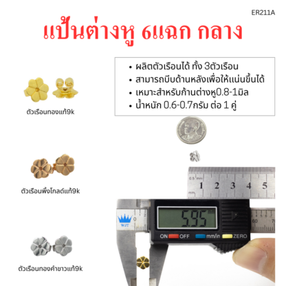 แป้นต่างหู6แฉกกลาง 1คู่ พิ้งค์โกลด์แท้9k 37.5%