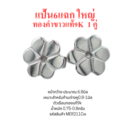 แป้นต่างหู6แฉกใหญ่ 1คู่ ทองคำขาว