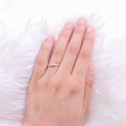 แหวนชู เม็ดลูก ข้างละ 2 เม็ด บ่าจีบเพชร