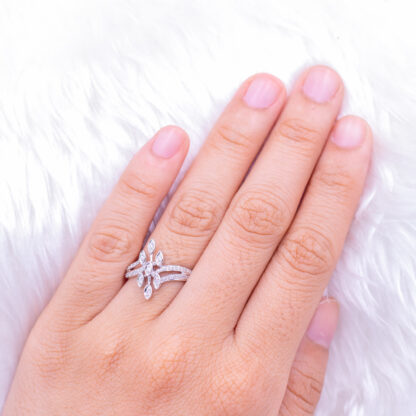 แหวนเงินดอกไม้เพชร บ่าเพชรคู่