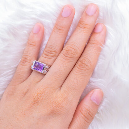 แหวนเงินพลอยสี่เหลี่ยม ก้านเพชร