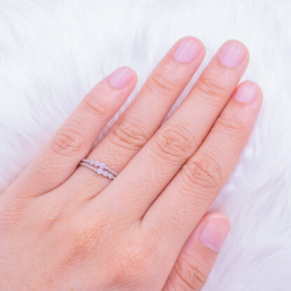 แหวนเงินเพชรไล่ ก้านคู่ 6 เม็ด ก้านไข่ปลา แถว