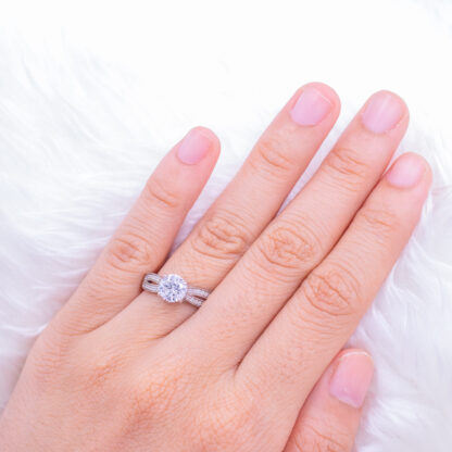 แหวนเงินเม็ดเดี่ยว ก้านโค้งคู่