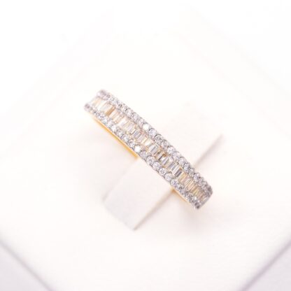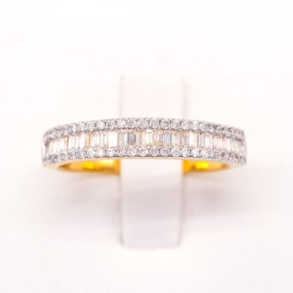 แหวนแถวเพชรบาเก็ด ประกบด้วยแถวเม็ดกลม ล่าง บนสวยๆ